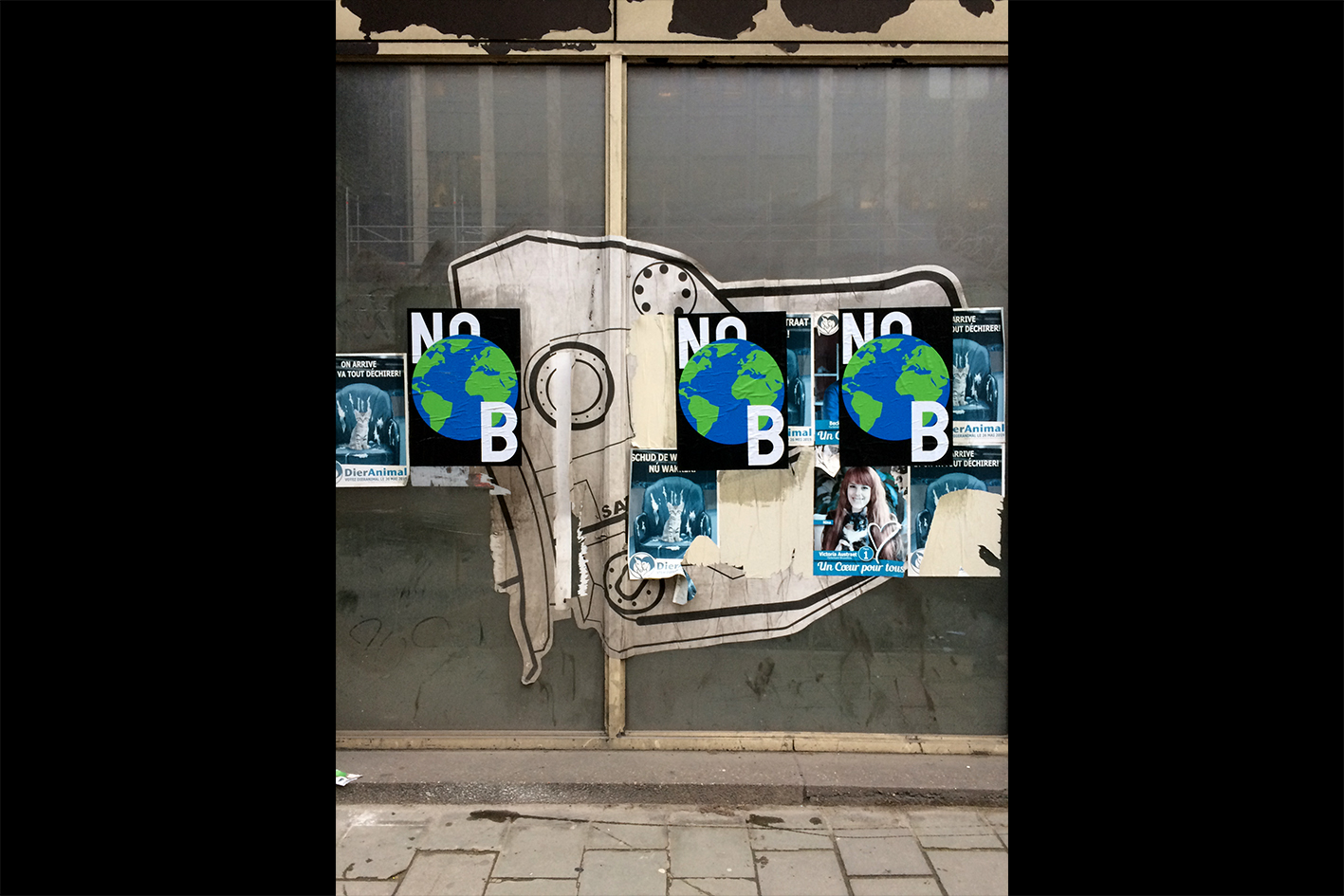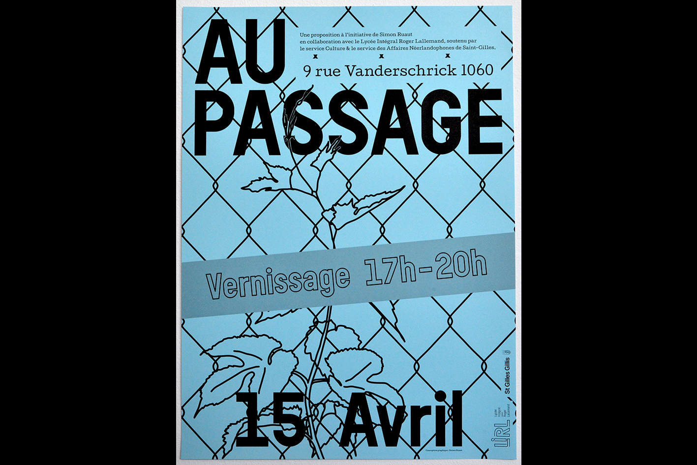 Self-initiated project, mural fresco made of glue paper in a public space. A graphic and poetic installation in-situ in collaboration with the high school LIRL and financially supported by the municipality of Saint-Gilles.